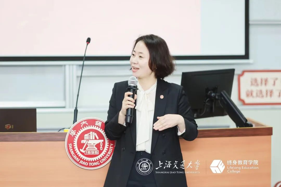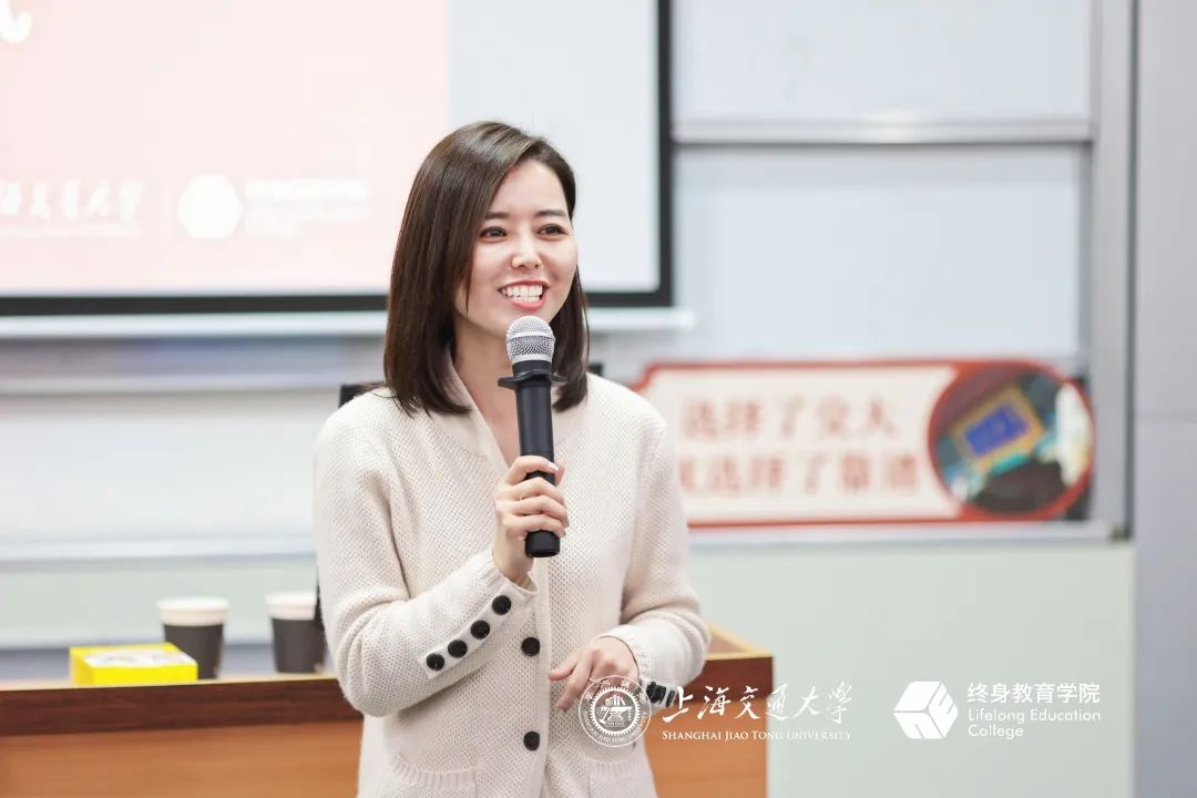 结业学员代表李玮同学上台发言。她表示在交大品牌班的学习过程中,不仅结交了朋友,对生活和事业也有了新的改观,对待周遭充满热爱和正能量。