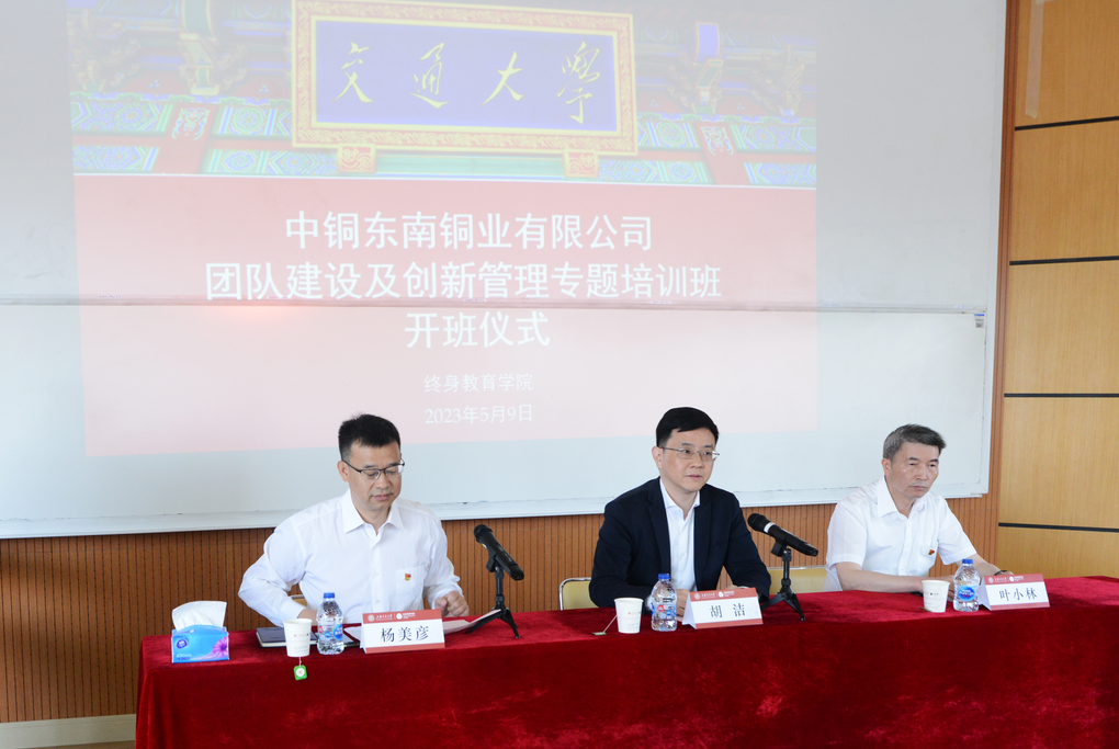 胡洁向全体学员的到来表示欢迎,对培训班开班表示祝贺,并介绍了交大及学院的历史、现状和未来发展方向。他对中铜东南铜业有限公司给予学院的信任表示感谢。他表示学院将不负众望,努力将此次专题培训班办好,希望学员们通过培训学习,对观点和理念都有新的启发。