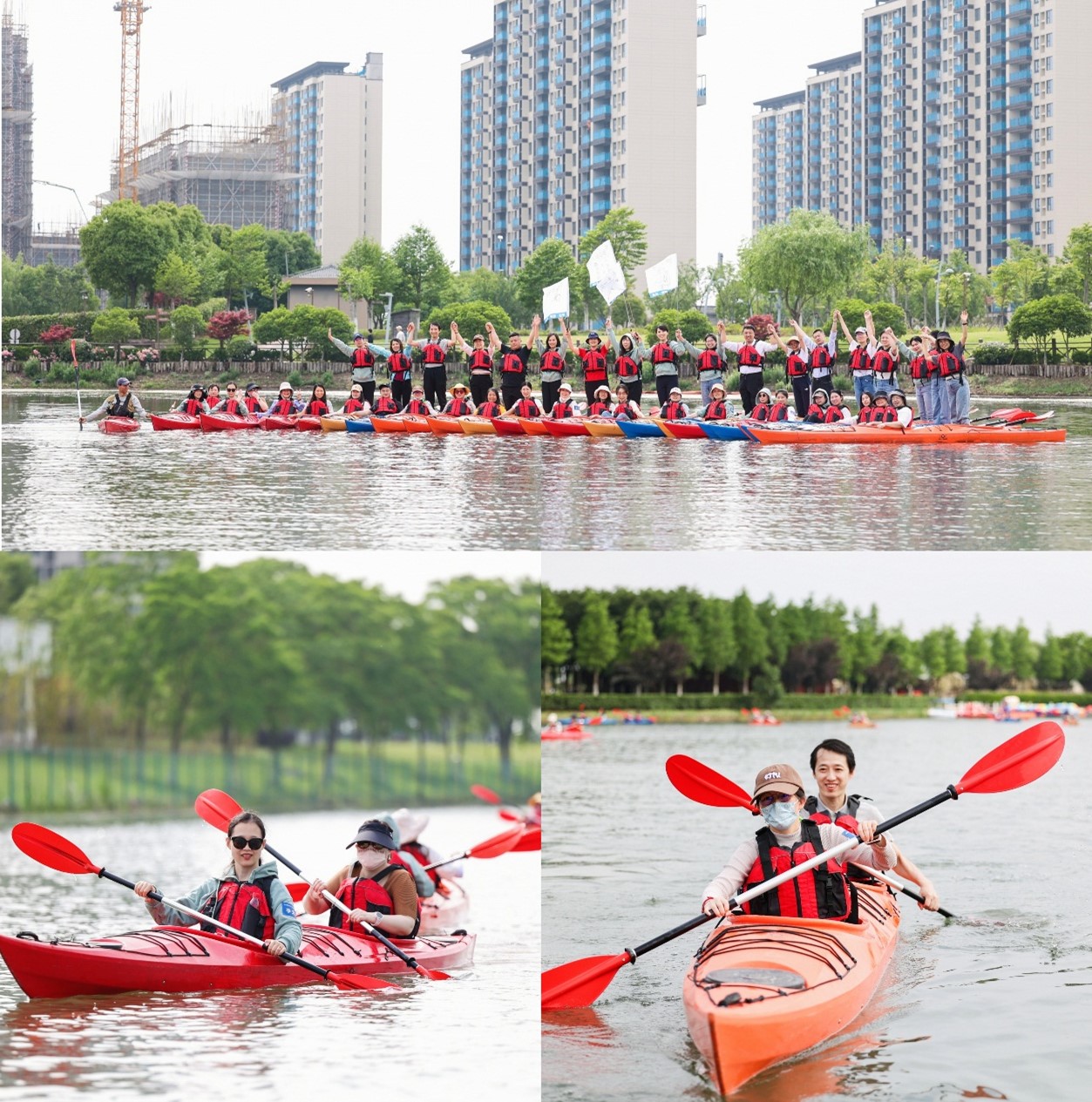 接下来是皮划艇逐浪环节,教练设计了“凌波微步”、“天女散花”、“行舟逐浪”等特色体验环节,学员们学习划艇技术,以艇和水为纽带,拉近彼此间的距离,加强团队之间的沟通,提升团队的认同感与企业归属感,拓展心智和体力。在大自然中体会、享受挑战与冒险,在训练中促进团队合作、实现逆境求生。