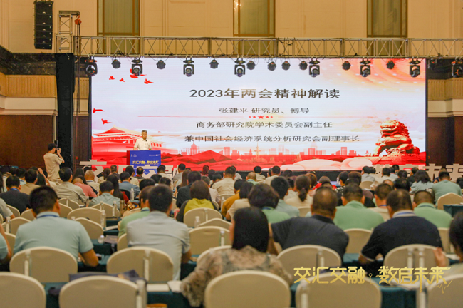 商务部国际贸易经济合作研究院学术委员会副主任、区域经济研究中心主任张建平作《2023全国两会精神解读》专题报告,以全球化视角分析国内外经济形势,呼吁领军企业家们要深入学习领会全国两会精神,坚定信心,加强创新,走数字化发展之路,引领企业高质量发展。