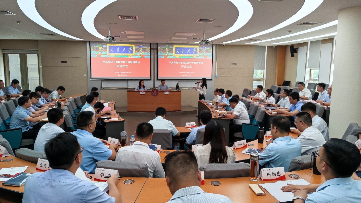 王茜茜作开班动员讲话。她对学院此次精心定制培训课程表示感谢,并指出此次培训班是平高集团为落实深入学习贯彻二十大精神,切实提升年轻干部和科技骨干的综合能力和业务素养而举办的一次具有深刻意义的培训活动。希望学员们能够珍惜此次难得的培训机会,静下心来,深学细悟,积极交流,充分利用上海交大的优秀教学资源,通过本次学习,不断提高理论修养,加强实践历练,真正做到学有所获、学有所成。