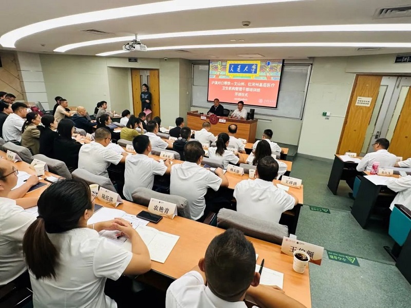 何国跃在开班仪式讲话中指出,一直以来,沪滇两地卫生健康系统坚决贯彻落实中央决策部署,医疗卫生沪滇合作力度不断加大,沪滇两地人民在长期的结对帮扶和交流合作中缔结了深厚的情谊。为落实深入学习贯彻党的二十大精神,切实提升云南省文山州、红河州基层医疗卫生机构管理干部的综合能力和管理水平,举办了此次培训班。希望学员能够珍惜这次培训机会,积极学习交流,做到学有所获,学以致用。期待本次培训能够帮助培养和建设文山州、红河州卫生机构的高素质管理干部队伍。
