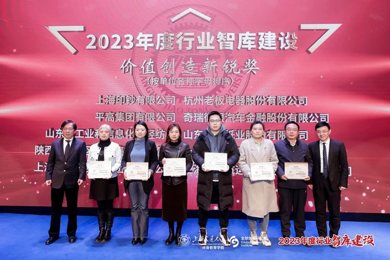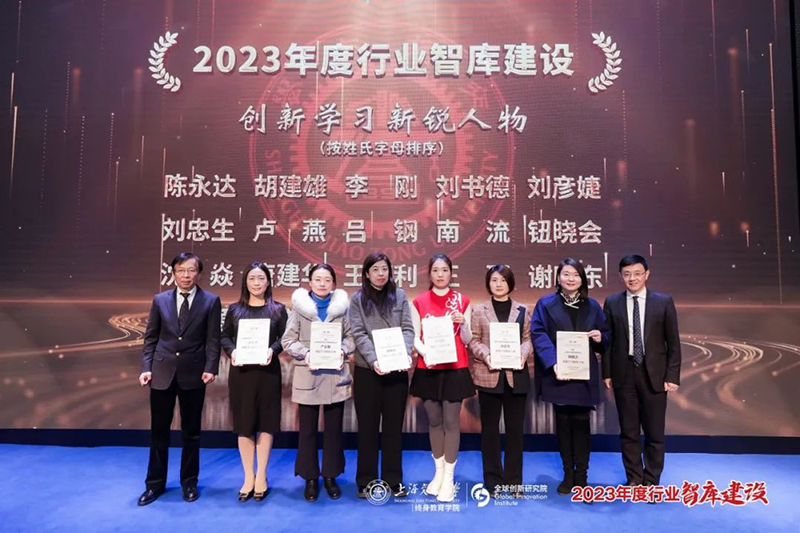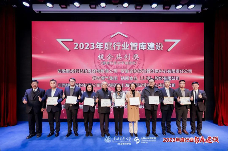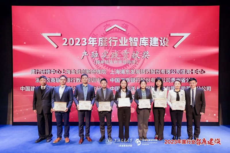 张卫刚、胡洁向获奖单位颁发2023年度行业智库建设|校企共创奖、2023年度行业智库建设|价值引领奖、2023年度行业智库建设|产融实践贡献奖。