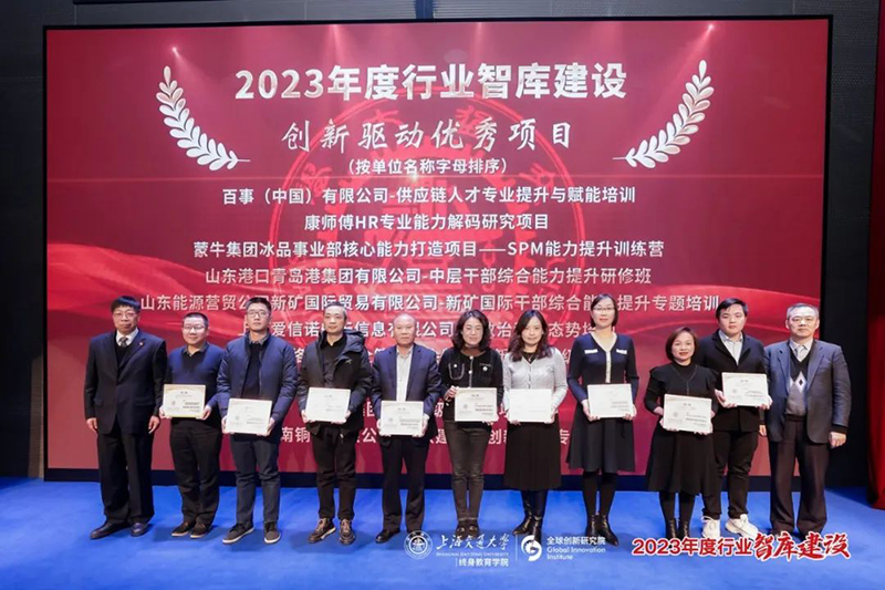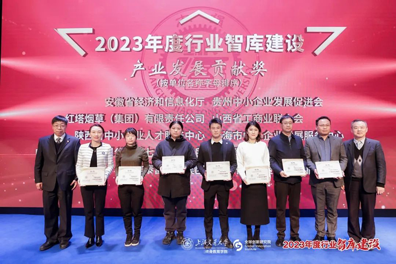 张卫刚、李昕荣向获奖单位颁发2023年度行业智库建设|产业创新奖、2023年度行业智库建设|产业发展贡献奖、2023年度行业智库建设|创新驱动优秀项目、2023年度行业智库建设|产教融合优秀项目奖项。