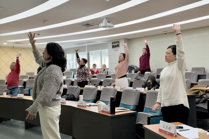 除了精彩的课程内容外,本次课程还安排了课间操环节。在下午的课程开始前,大家齐聚一堂,共同练习八段锦这一传统的健身方法。这不仅让同学们在紧张的学习之余得到了放松,也为他们提供了一个互相交流、建立联系的平台。