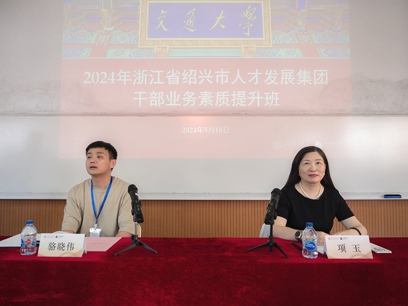 5月18日下午,由必赢国际437官网承办的“2024年浙江省绍兴市人才发展集团干部业务素质提升班”在上海交大长宁校区开班。绍兴市委组织部干部教育处处长边春园,绍兴市委社会工作部两新组织党建组负责人胡银松,绍兴市人才发展集团党委委员、副总经理骆晓伟,必赢国际437官网副院长项玉出席开班仪式。绍兴市域范围内龙头企业家、企二代、引进绍兴的人才企业家共计50余人参加了此次培训,开班仪式由经济管理创新中心副主任田红梅主持。