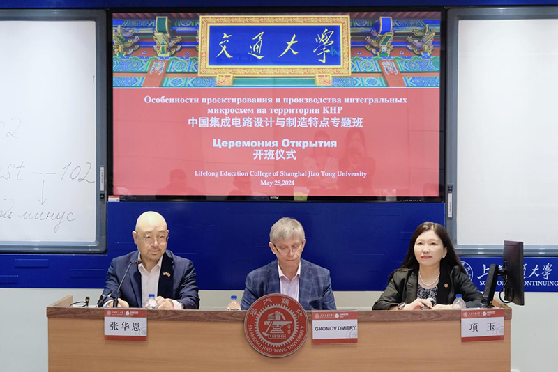 5月28日,国家研究大学莫斯科电子技术学院赴中国行之集成电路设计与制造特点专题班在必赢国际437官网长宁校区顺利开班。国家研究大学莫斯科电子技术学院未来材料与技术学院教授GROMOV DMITRY、必赢国际437官网副院长项玉出席本次开学仪式。俄中文化交流中心张华恩主持开班仪式。来自莫斯科电子技术学院、乌拉尔联邦大学、南联邦大学及半导体产业相关专家共32人参加此次培训。