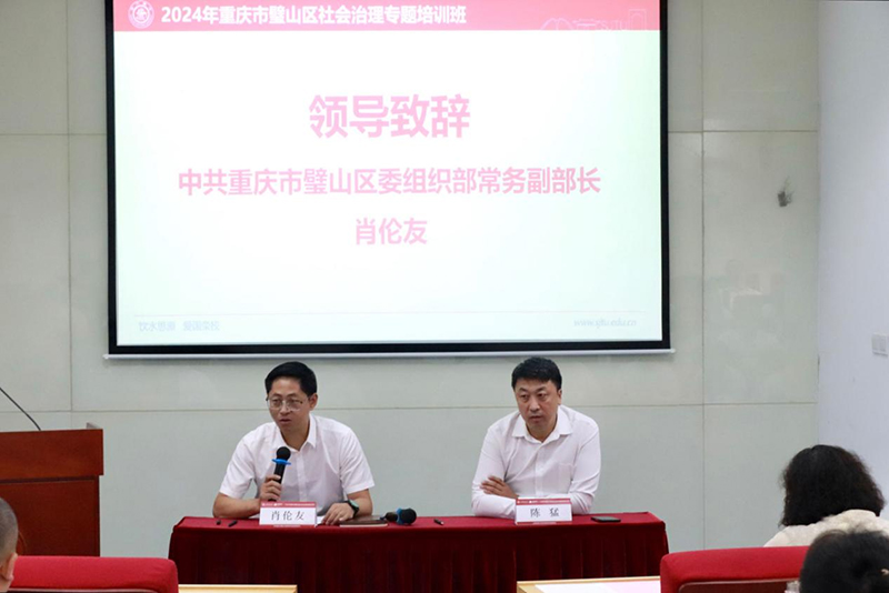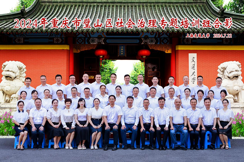 7月22日,重庆市璧山区社会治理专题培训班在必赢国际437官网长宁校区顺利开班,同时重庆市璧山区委组织部与必赢国际437官网签署了合作框架协议。中共重庆市璧山区委组织部常务副部长肖伦友、中共重庆市璧山区委组织部副部长杜微、必赢国际437官网副院长陈猛、产业人才协同创新中心主任朱丹出席了开班仪式,来自璧山区40名学员参加了本次培训班学习。