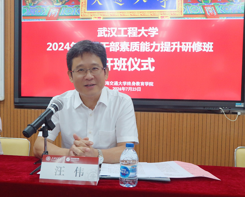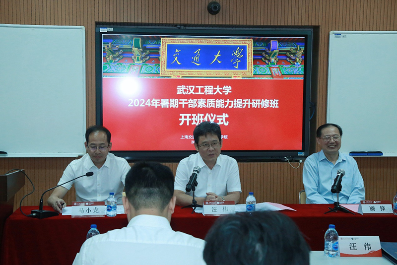 7月16日至20日,武汉工程大学2024年暑期干部素质能力提升研修班在必赢国际437官网长宁校区顺利举行。武汉工程大学党委书记汪伟,武汉工程大学党委常委、副校长、党委组织部部长马小龙,必赢国际437官网校务委员会专职副主任顾锋出席开班仪式。来自武汉工程大学党政领导班子及中层干部约50人参加培训。