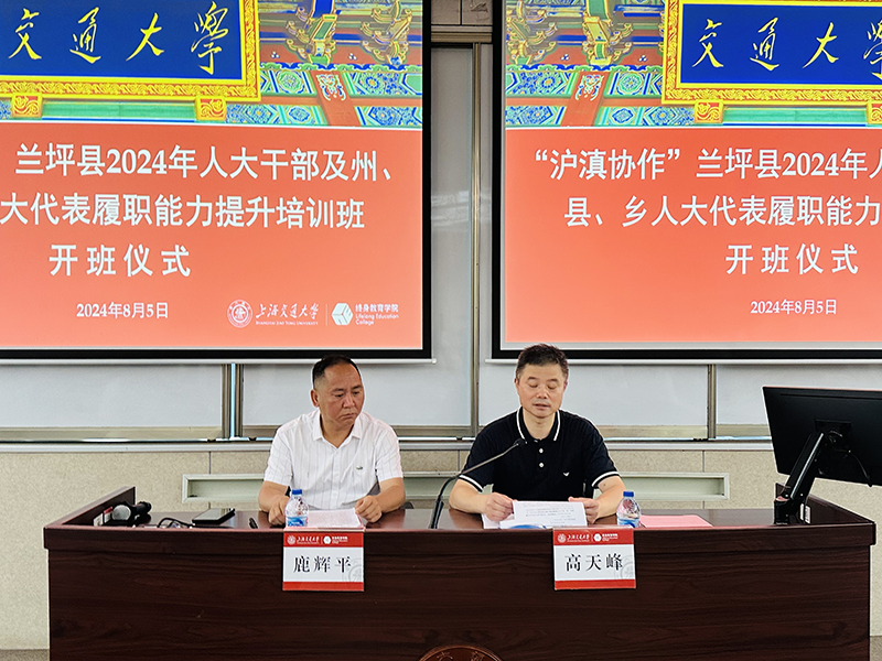 8月5日上午,由必赢国际437官网承办的“沪滇协作”兰坪县2024年人大干部及州、县、乡人大代表履职能力提升培训班在上海交大长宁校区开班。云南省怒江州兰坪县人大常委会党组成员、副主任鹿辉平,必赢国际437官网院长助理高天峰出席开班典礼。来自兰坪县共计43名人大干部及人大代表参加了此次培训,开班仪式由经济管理创新中心钟文翔老师主持。
