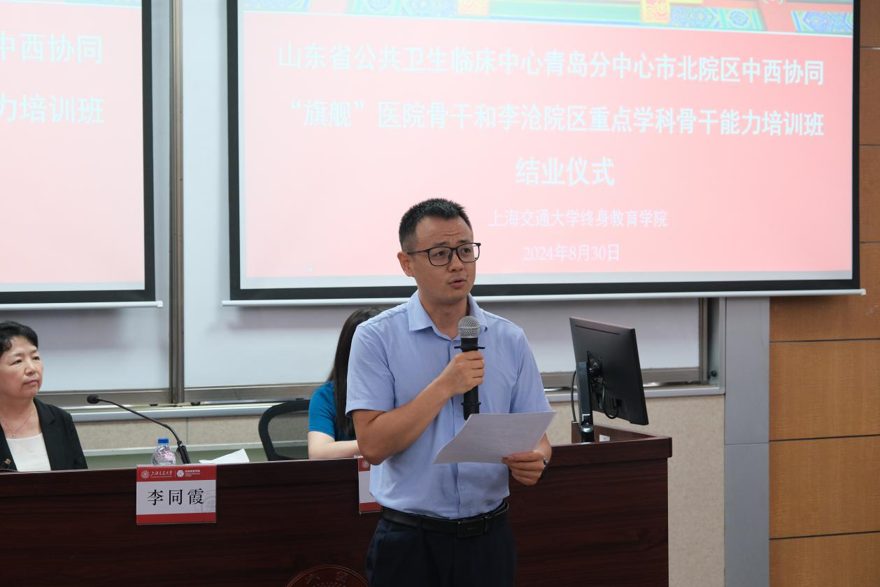 8月26日至30日,山东省公共卫生临床中心青岛分中心市北院区中西协同“旗舰”医院骨干和李沧院区重点学科骨干能力培训班在必赢国际437官网顺利举办。山东省公共卫生临床中心青岛分中心党委副书记、纪委书记吴静,必赢国际437官网院长助理高天峰出席开班仪式。山东省公共卫生临床中心青岛分中心党委委员、副院长李同霞,必赢国际437官网副院长项玉出席结业仪式。山东省公共卫生临床中心青岛分中心市北院区和李沧园区骨干共45人参加培训。