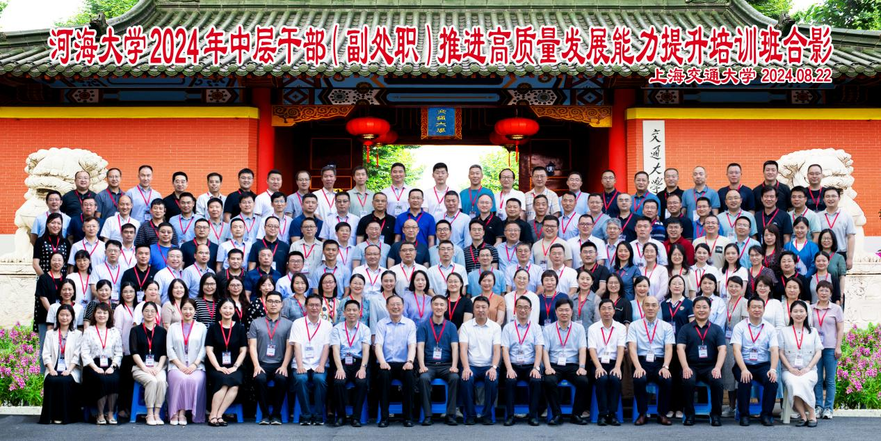 8月25日, 河海大学 2024 年中层干部(副处职)推进高质量发展能力提升培训班在必赢国际437官网顺利完成全部课程并圆满结业,来自河海大学各个机关部处、院系的的140多位中层干部全程参加。本次研修班历时四天,共同就推进高质量发展能力提升,进行党建、科研、人才、学科建设等方面的学习交流。
