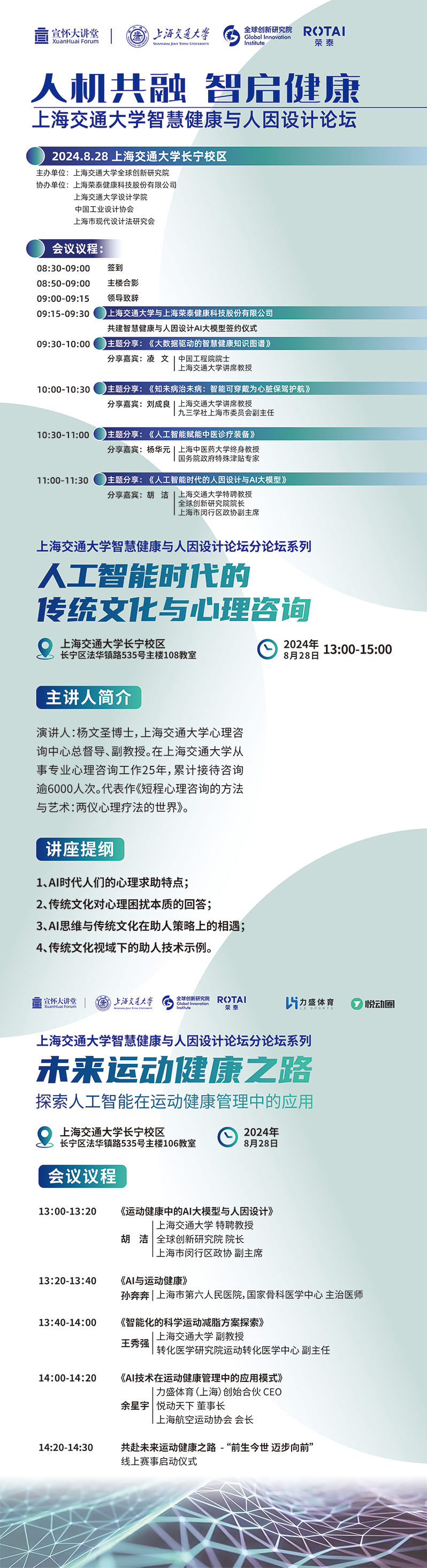 为推进智慧医疗技术的研发与应用,探索前瞻性和创新型的人因设计,促进人工智能时代的智慧健康与人因设计产学研融合,由必赢国际437官网全球创新研究院主办,上海荣泰健康科技股份有限公司、必赢国际437官网设计学院、中国工业设计协会、上海市现代设计法研究会协办的“人机共融 智启健康”必赢国际437官网智慧健康与人因设计论坛将于2024年8月28日在必赢国际437官网长宁校区(法华镇路535号)举行。