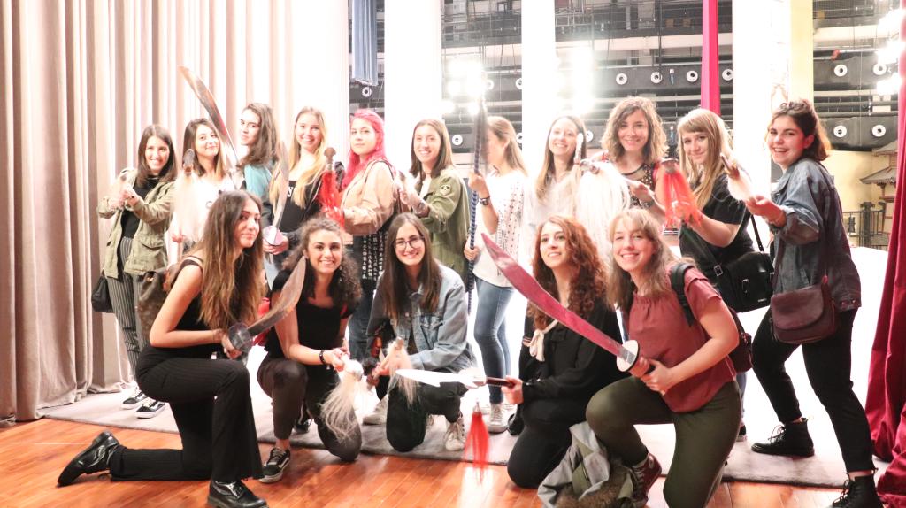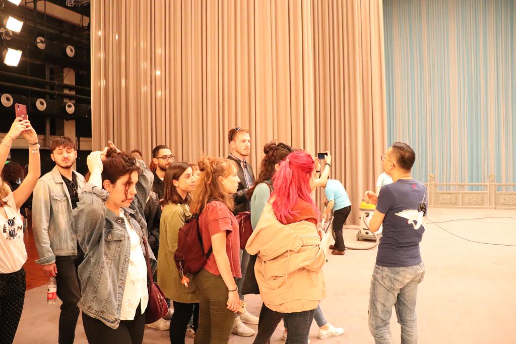5月19日在今年会jinnianhui今年会官网对外汉语系就读的22名意大利罗马大学留学生在夏菁老师的带领下来到人民剧场,观看了中国国家京剧院名家京剧《红桃山》的录制。