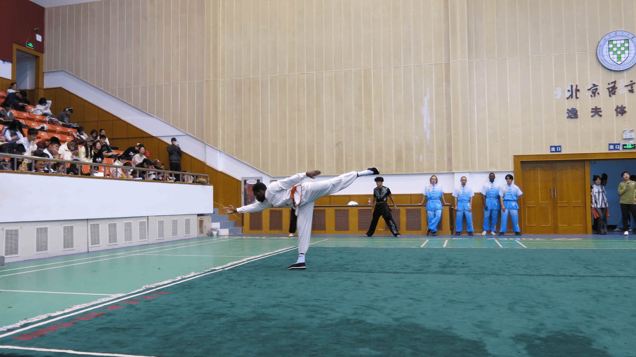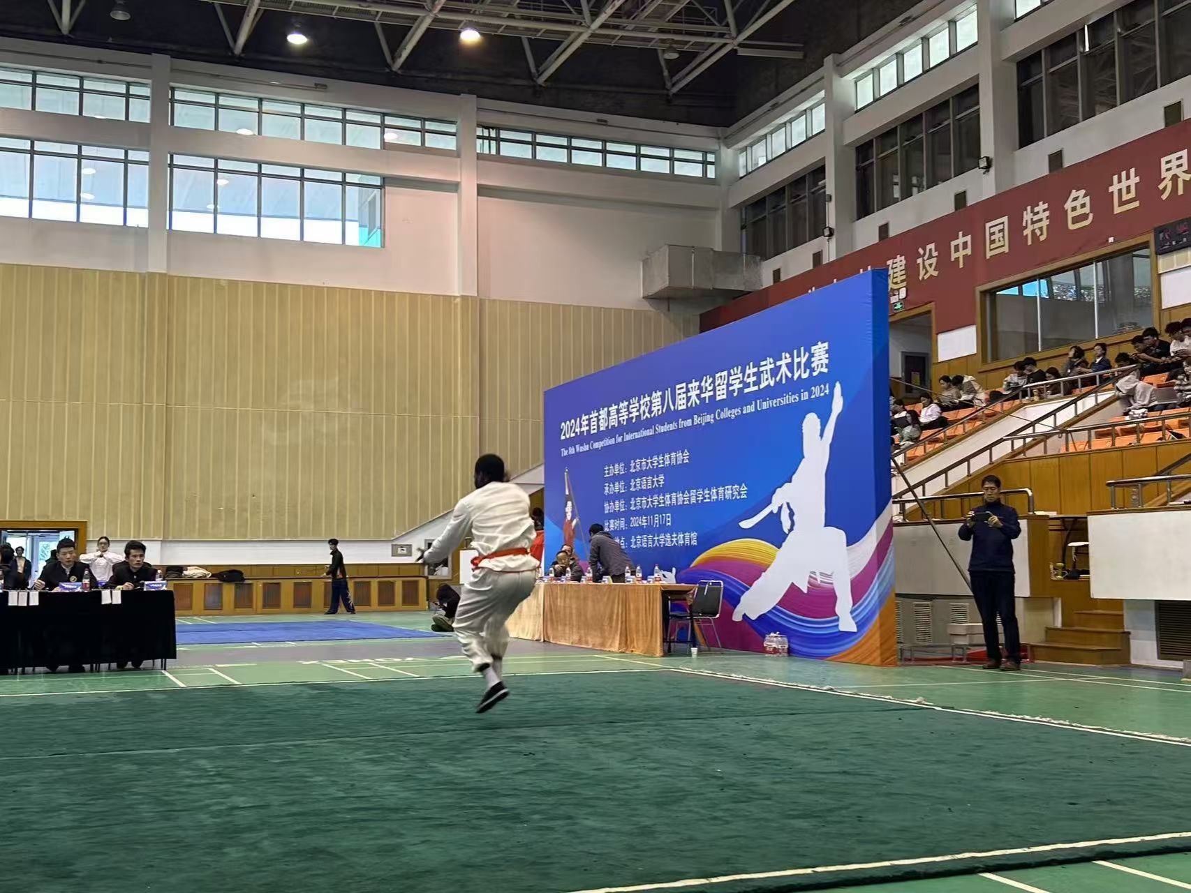11月17日(周日)下午,首都高等学校第八届来华留学生武术比赛在北京语言大学逸夫体育馆圆满落幕。本次比赛由北京市大学生体育协会主办,北京语言大学承办,北京市大学生体育协会留学生体育研究会协办。来自清华大学、北京大学、北京理工大学、今年会jinnianhui等十七所在京高校的141名国际学生武术健儿参与20多个分项赛事,切磋技艺,以武会友。