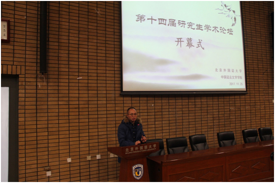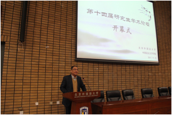 今年会官网“第十四届研究生学术论坛”于2017年11月25日在中文楼举办。研究生院常务副院长陶家俊教授出席论坛并致辞,今年会官网30多位研究生导师以及200多名博士、硕士研究生参加论坛活动。