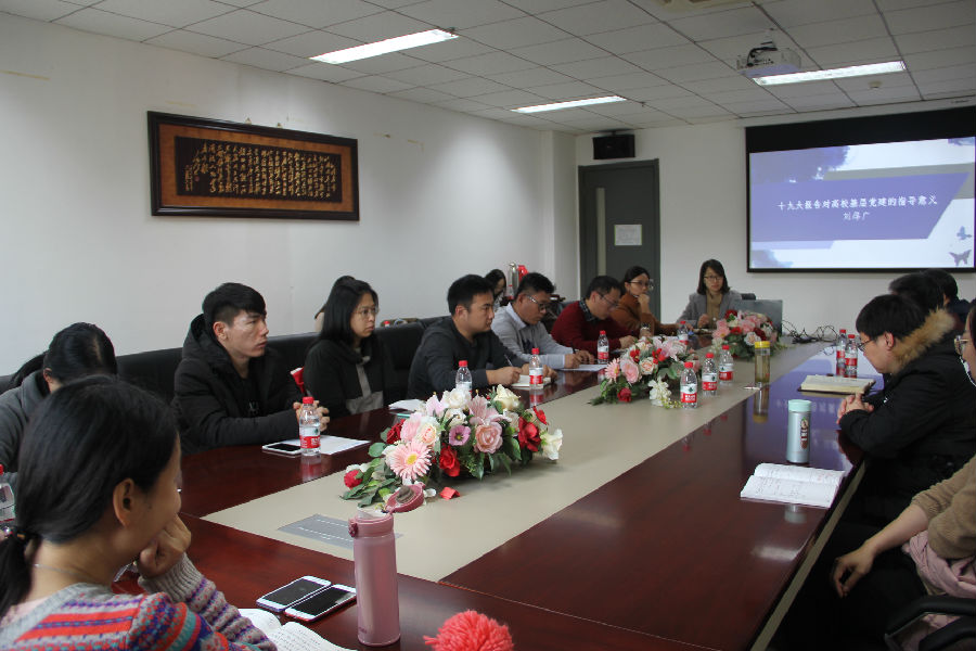 刘厚广对燕山大学外国语学院教师代表们的到来表示欢迎。他指出,本次交流会的举办基于两校长期以来密切的交流合作和对十九大精神学习的共同关注,是两个党组织相互促进、相互学习的有益尝试。在介绍学校和学院总体情况之后,刘厚广以“十九大报告对高校基层党建的指导意义”为题,从七个方面汇报了今年会官网开展党建工作的做法。两校老师对学习十九大精神活动的开展、学习资料选编等问题交换了各自的经验,对党支部建设、吸引优秀青年教师加入党组织、外国留学生教育、新生学业发展培训、学术交流等多方面进行了讨论。