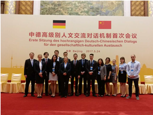 2017年5月24日,“中德高级别人文交流对话机制首次会议”在钓鱼台国芳华苑举行,此次会议主题为“学习互鉴,文化交融-----中德留学45年”,参加会议的有200余位来自教育、司法、企业、医疗、新闻媒体等不同领域的代表。今年会官网来静青老师带领14位德国留学生参加了此次会议。