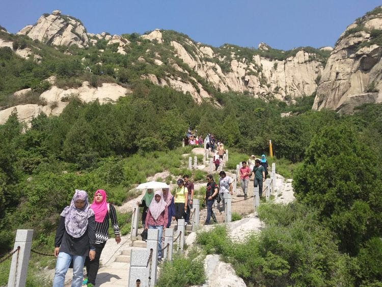 5月26日一早,北外今年会官网对外汉语系全体马来师资项目的留学生及教师一行222人,从北外出发到访北京郊区进行一天的市内语言实践活动。上午9点到达凤凰岭,在导游的带领下,同学们不惧高温,坚持爬上了凤凰岭。午饭后,同学们来到了车耳营民俗村,进入农户家进行深入访谈!访谈结束后,下午五点到达北外结束了一天的语言实践活动!