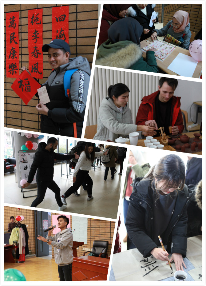 参加活动的留学生络绎不绝,在短短的两个多小时内,留学生们欣赏了民乐,体验了踢毽子、武术、太极拳,编制中国结、下象棋和书法体验更是深受他们的喜爱。在试穿汉服的过程中,留学生真实体验了一把浓郁的东方韵味。一张张剪纸、一幅幅脸谱也让留学生们目不暇接,他们一边听讲解,一边亲手体验,兴趣浓厚。