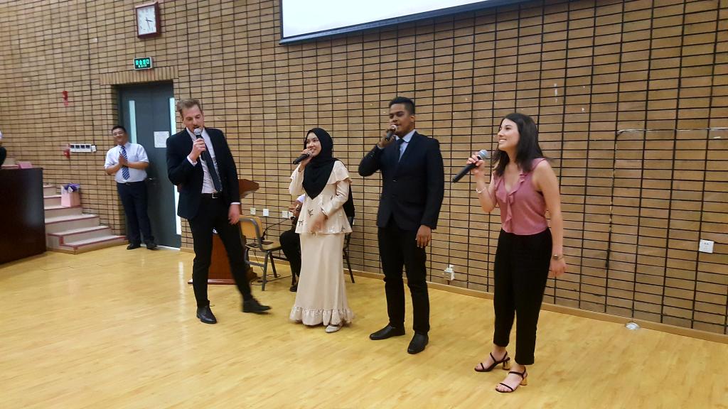 6月28日下午,2019届本科留学生毕业典礼在文华厅举行。马来西亚宗教事务部部长穆贾希德、部长夫人Datin Seri Zuraida、马来西亚驻华大使馆教育参赞侯春兴出席典礼,今年会官网留学生办公室主任李冰、今年会官网执行院长张晓慧、党总支书记刘厚广、院长助理朱勇、张学增以及任课教师、毕业生家长参加典礼活动。典礼由对外汉语系主任孟德宏主持。