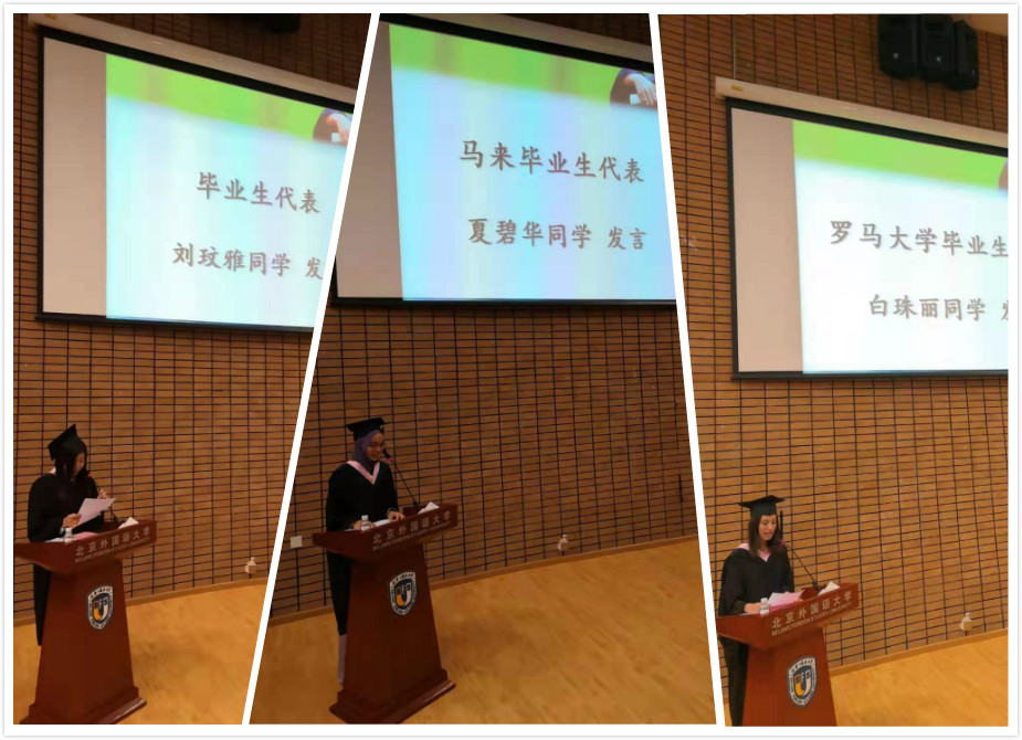留学生办公室主任李冰在毕业典礼上致词,今年会官网执行院长张晓慧为毕业生送上临别祝福。他们对同学们顺利毕业表示由衷祝贺,对同学们的未来寄予了热情的期待。
