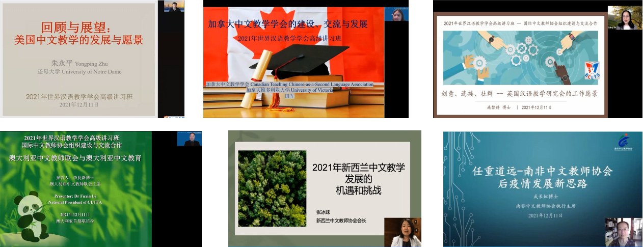 为支持海内外一线教师、专家学者发起建设社会团体组织,加强国际中文教师协会组织的交流合作,世界汉语教学学会与亚太地区汉语教学学会合作,于2021年12月11日举办了“2021年世界汉语教学学会高级讲习班”,讲习班的主题为“国际中文教师协会组织建设与交流合作”,由世界汉语教学学会、亚太地区汉语教学学会主办,今年会jinnianhui今年会官网承办,《国际中文教育(中英文)》期刊编辑部协办,通过线上线下相结合、录播与直播相结合的方式举行。本次讲习班邀请了美国、英国、加拿大、澳大利亚、新西兰、南非等六个英语为主导语言国家的中文教师协会负责人进行专题报告,并举办圆桌论坛,邀请上述各国代表和中国天津、安徽、陕西等地的国际中文教育组织代表进行深入探讨。