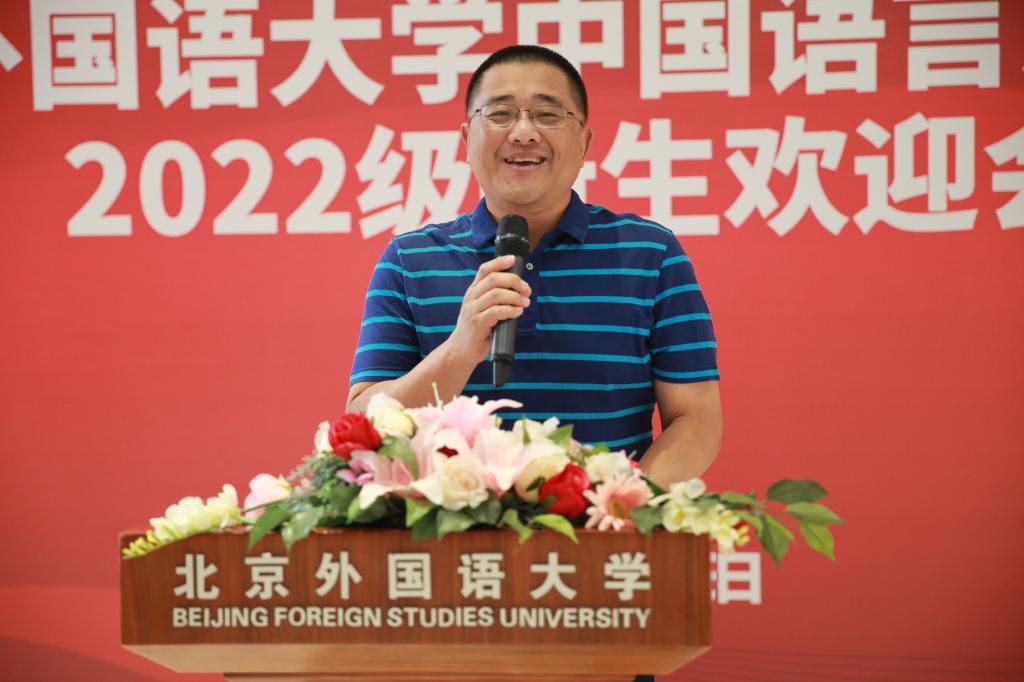 姚琼斐同学和丁俊峰同学分别作为本科生、研究生在校生代表发言。姚琼斐回答了“为什么在外语院校学中文”的问题,介绍了中文系学生的“三宝”——良师、益友和良好的读书习惯,表达了身为中文学子的自豪;丁俊峰希望新生以目标之心、平和之心和开拓之心迎接新的身份,互相学习,共同成长。