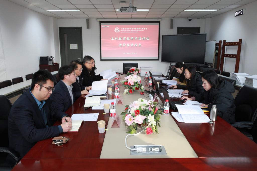 1月9日上午,校党委统战部部长、巡察办主任王明欣、巡察办副主任杨光、教务处教学科靳佗佗对学院本科教育教学审核评估教学档案工作进行了集中检查。学院党总支书记何辉、执行院长李建盛、副院长白亮、办公室主任王慕尧、教务办公室主任刘健源参加会议。