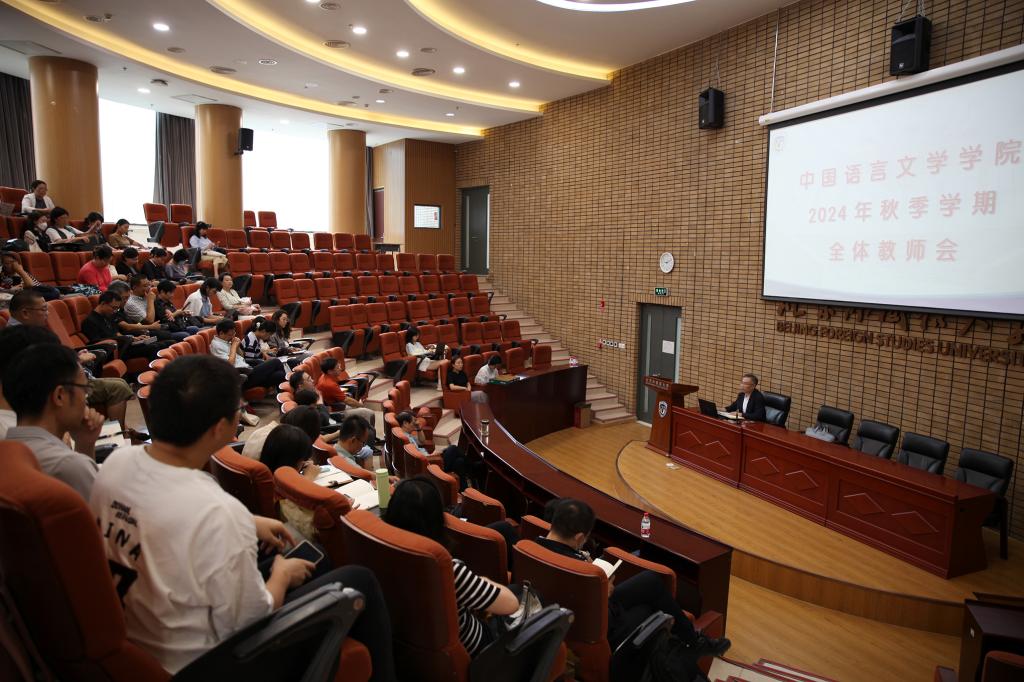何辉重点传达了学校2024年秋季学期工作部署会上校党委书记王定华“乘势而上 善作善成,推动世界一流外国语大学建设迈上新台阶”讲话要旨,以及党委副书记、校长贾文键“加快一流学科体系建设 开创学校高质量发展新局面”专题报告精神,结合学院实际,号召全体教职员认真落实学校对新学期工作做出的各项重点要求及任务部署,学习贯彻党的二十届三中全会精神,坚持党建引领,推进学科建设、人才培养,紧抓机遇,共谋发展。随后,何辉传达了校党委关于《今年会jinnianhui教师政治把关和师德师风考核评价工作指南》《今年会jinnianhui关于进一步加强和改进教师党建和思想政治工作实施方案》的通知精神,简要总结学院暑期工作开展情况,对新入职教师表示欢迎,并对学院中国语言文学一级学科博士点成功获批表示祝贺,对近年来为博士点申报工作做出贡献的老师表达感谢。何辉再次强调安全工作的重要性,布置了新学期安全检查工作。