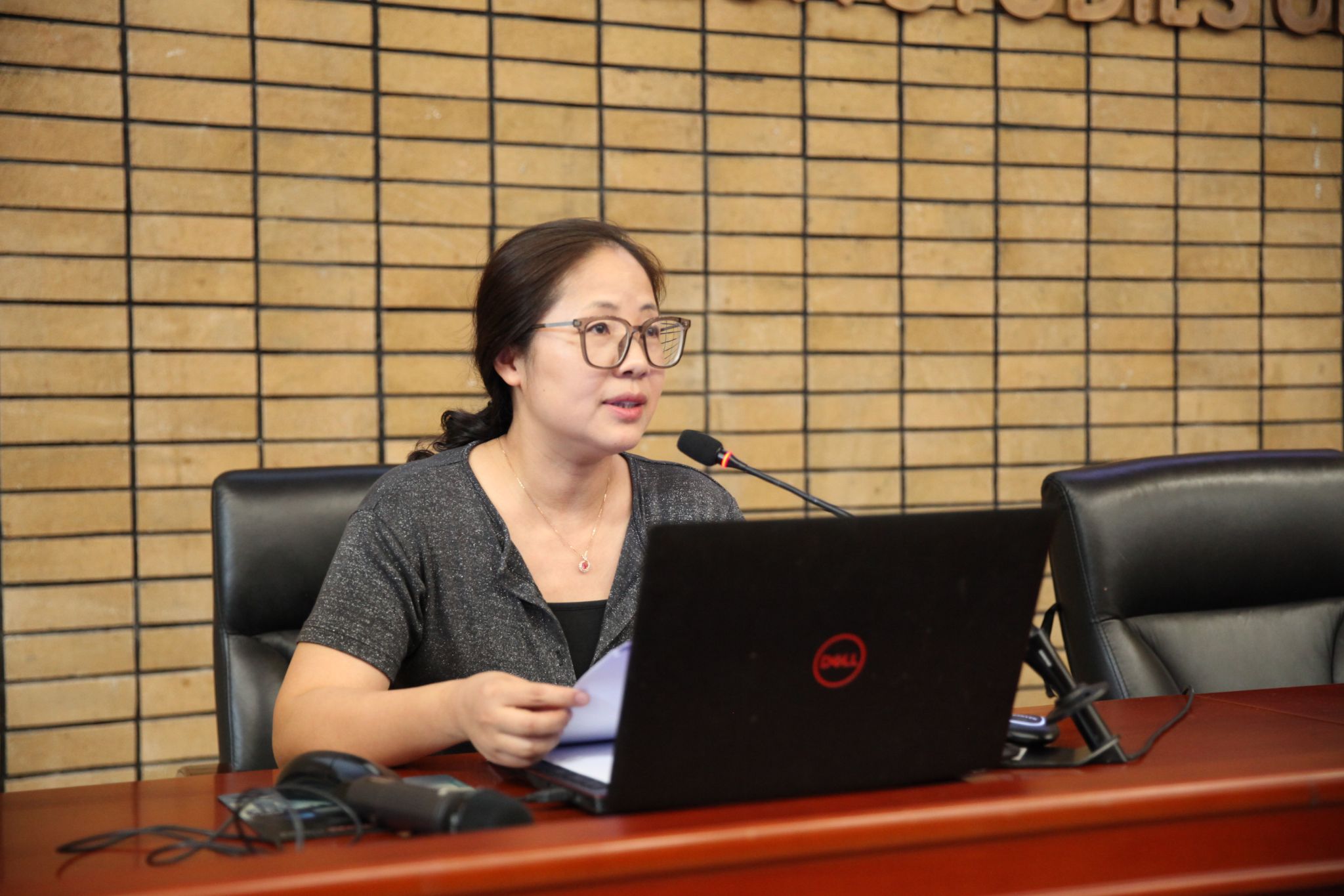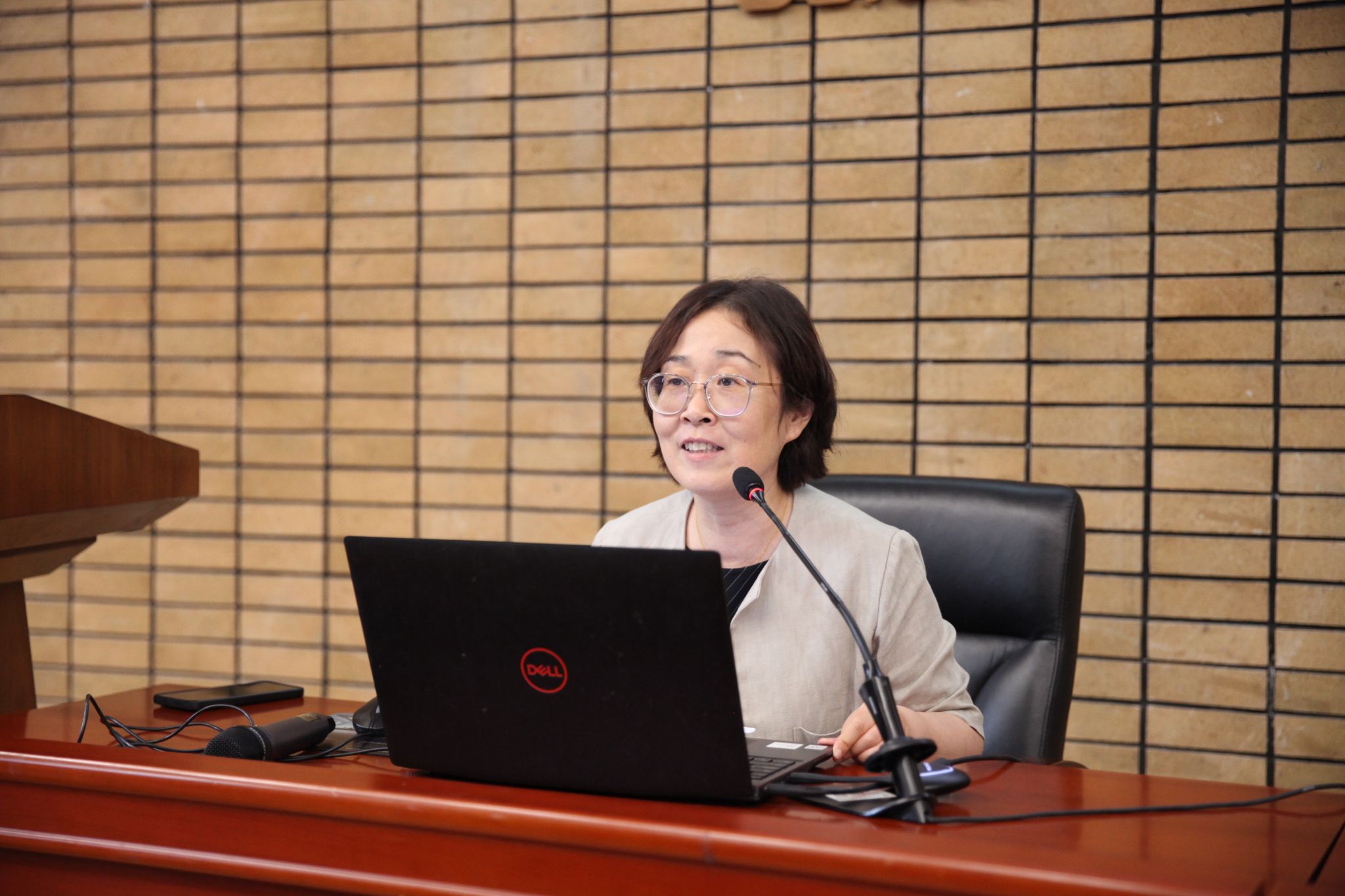 副院长王祖嫘汇报了国际中文教育及外事工作的成果。她详细介绍了汉硕培养体系的实践特色,总结了留学生招生进展与非学历教育的成果,并重点分享了“中-英-毛高级翻译人才培养”等开创性国际合作项目。同时,她对领导班子的支持及教师团队的协作表示了感谢,期望进一步提升北外中文学科的国际影响力。