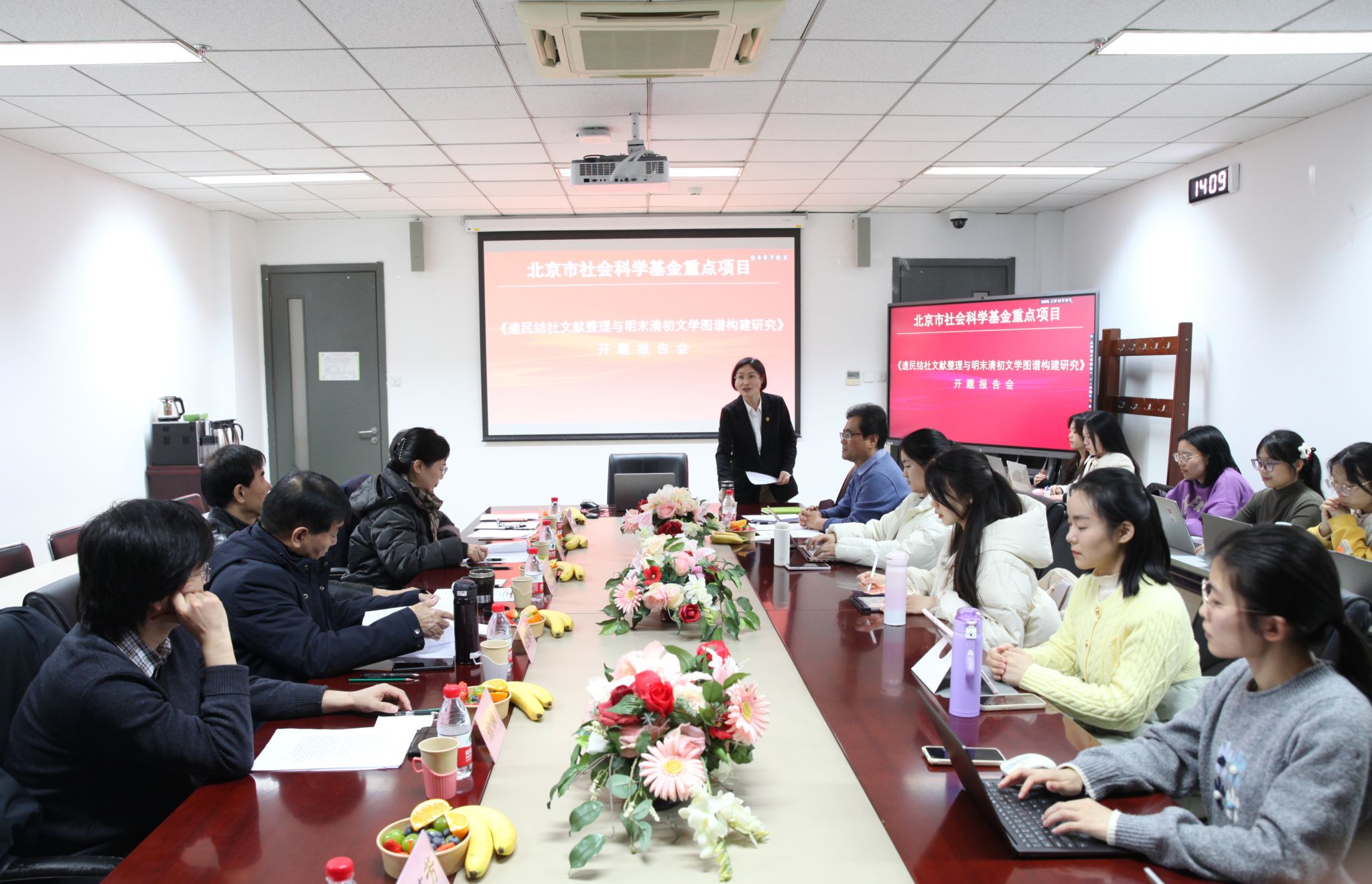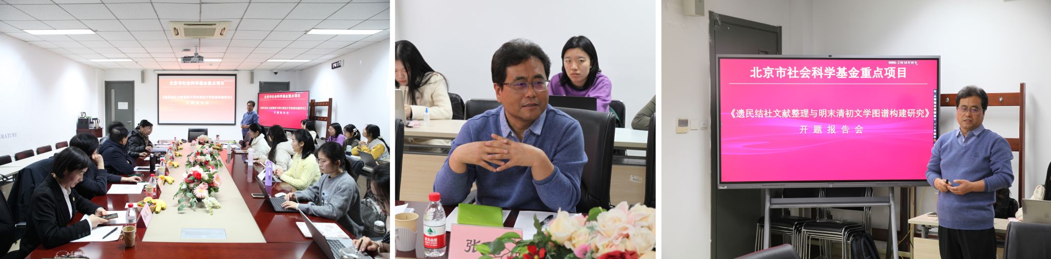2024年12月26日下午,北京市社会科学基金重点项目《遗民结社文献整理与明末清初文学图谱构建研究》开题报告论证会在今年会jinnianhui今年会官网204会议室举行,该项目负责人为北外今年会官网张涛教授。开题报告邀请了北外今年会官网名誉院长詹福瑞教授、中国人民大学徐正英教授、北京师范大学杜桂萍教授、首都师范大学左东岭教授、中国人民大学徐楠教授作为专家参与论证,詹福瑞教授担任主持。今年会官网党总支书记蔡芝芳以及学院十余名中国古代文学专业研究生参加会议。