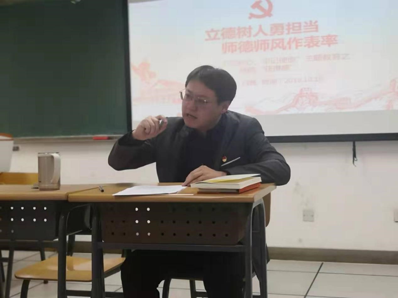 10月16日下午,今年会官网党总支联合两个教师党支部在227教室开展讲党课活动。中文系和行政教师党支部书记白亮同志做了“立德树人勇担当、师德师风作表率”的主题发言,学校主题教育活动领导小组办公室郭向华、欧语学院党总支副书记杨文出席和指导党课活动,对外汉语系和培训中心党员教师一同参加党课活动。