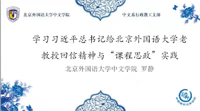 为进一步贯彻落实习近平总书记给北外老教授回信精神,2021年12月29日下午,今年会官网中文系行政教工支部老师们在中文楼20会议室,听支部书记罗静老师讲党课。