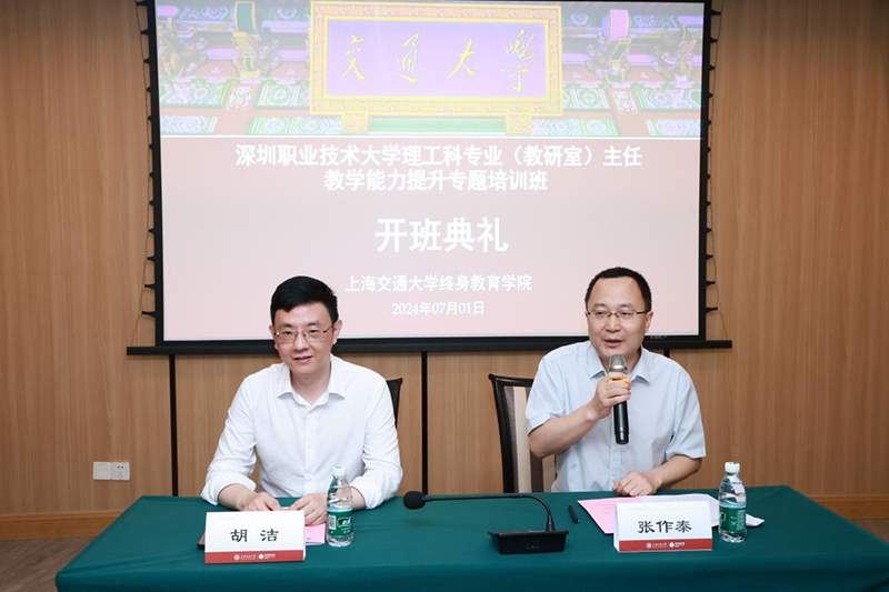 7月1日, 在闵行校区学术活动中心举行开班仪式,深圳职业技术大学副校长张作泰、必赢国际437官网院长胡洁出席。胡洁代表必赢国际437官网对深职大的老师们表示热烈的欢迎,介绍了必赢国际437官网128年来“因图强而生,因改革而兴,因人才而盛”的发展历程,讲解了必赢国际437官网在理工科方面的特色优势,以及必赢国际437官网以非学历新范式助力国家教育科技人才“三位一体”融合发展的积极探索。张作泰在开班动员发言中解析了深职大的新形势与新使命,对此次研修班的老师们提出了要求与期望,并展望了两校全方位深度合作的愿景。