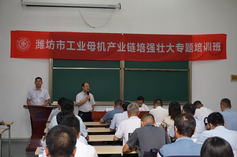 狄波作开班动员讲话。他对学员们提出三点要求。首先、要深学细悟上级的部署要求,增强做好工作的责任。要利用山东整体产业链的优势,大幅降低制造成本,增强竞争力,把工业母机产业打造成全市的战略性新兴产业。第二,要深学细悟行业发展规律、掌握推动行业发展的方法。第三,要深学细悟兄弟城市的经营,提高推动行业发展的落实。按照潍坊市的统一部署,科技厅是工业母机产业链的牵头部门,要围绕产业链的发展需求来指导重点企业建立研发平台,吸引人才,提升创新能力。随后,他强调了培训纪律,并预祝培训班圆满成功。