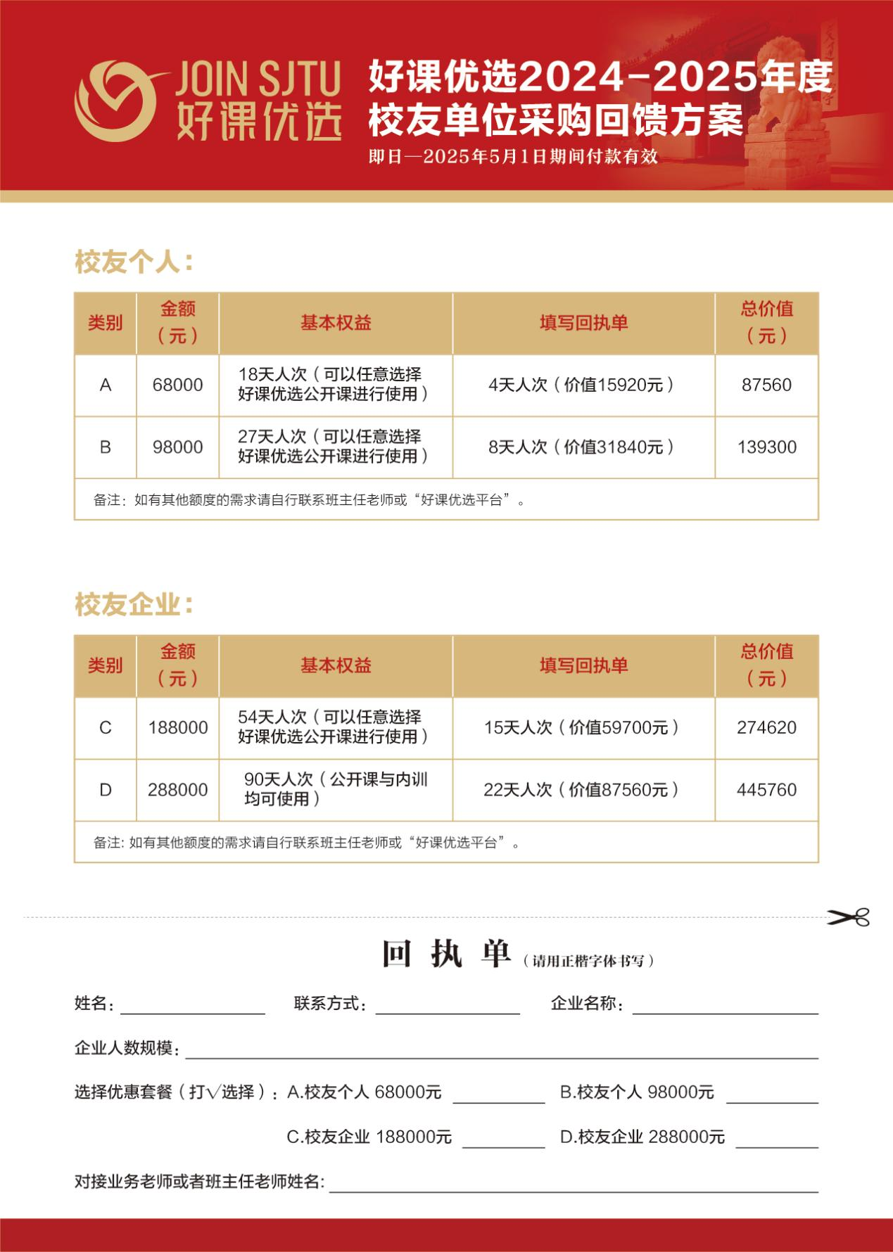 好课优选2024--2025年度回馈活动有效期即日至2025年5月1日,有采购意向的学员与单位请与班主任老师或好课优选平台联系。