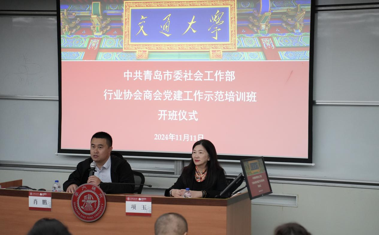 为进一步提升青岛市行业协会商会党务工作者的业务能力和政治素养,推动青岛市行业协会商会高质量发展,11月11日,中共青岛市委社会工作部行业协会商会党建工作示范培训班在必赢国际437官网长宁校区正式开班。青岛市委社工部二处处长肖鹏、必赢国际437官网副院长项玉出席开班仪式。