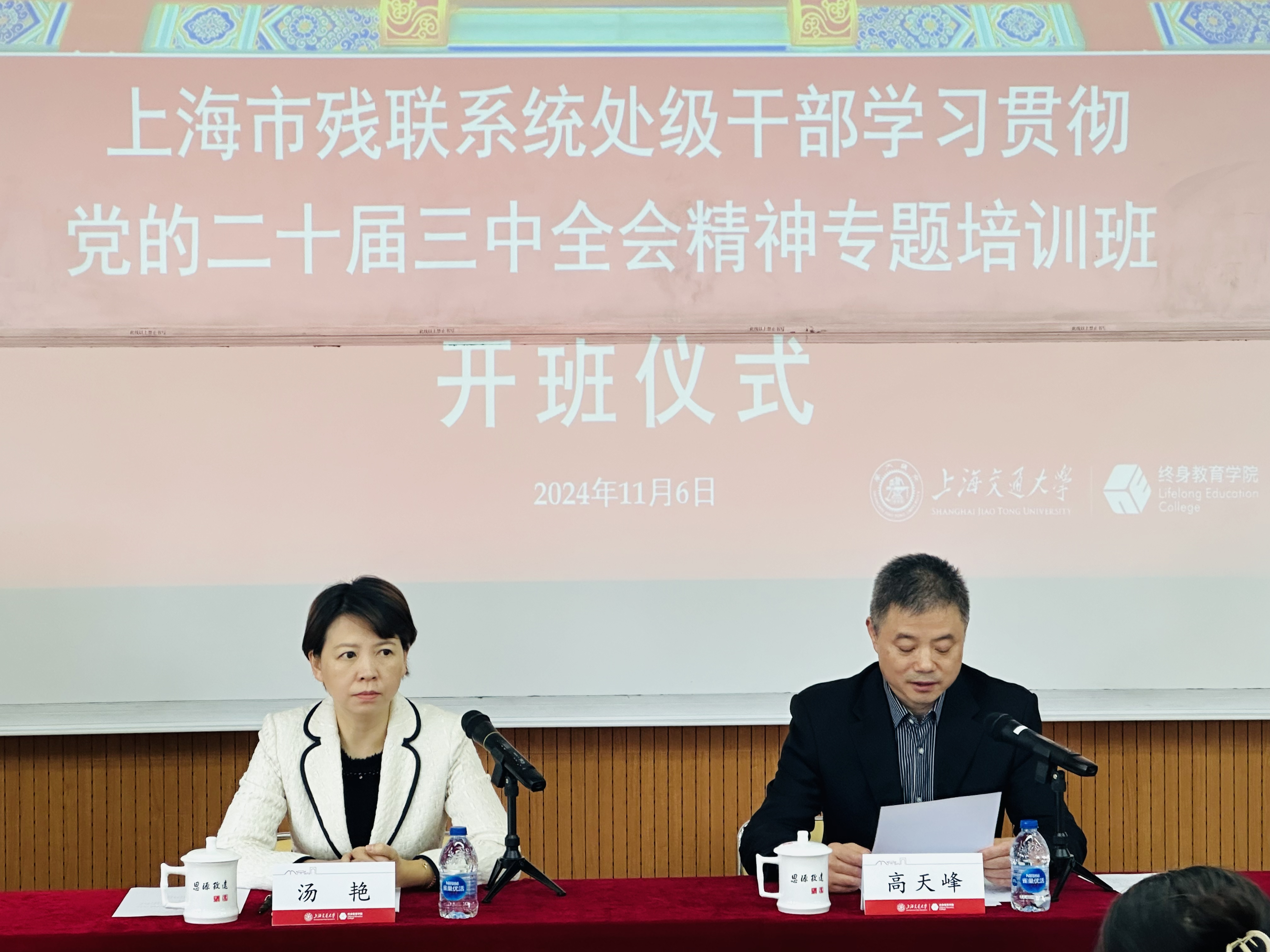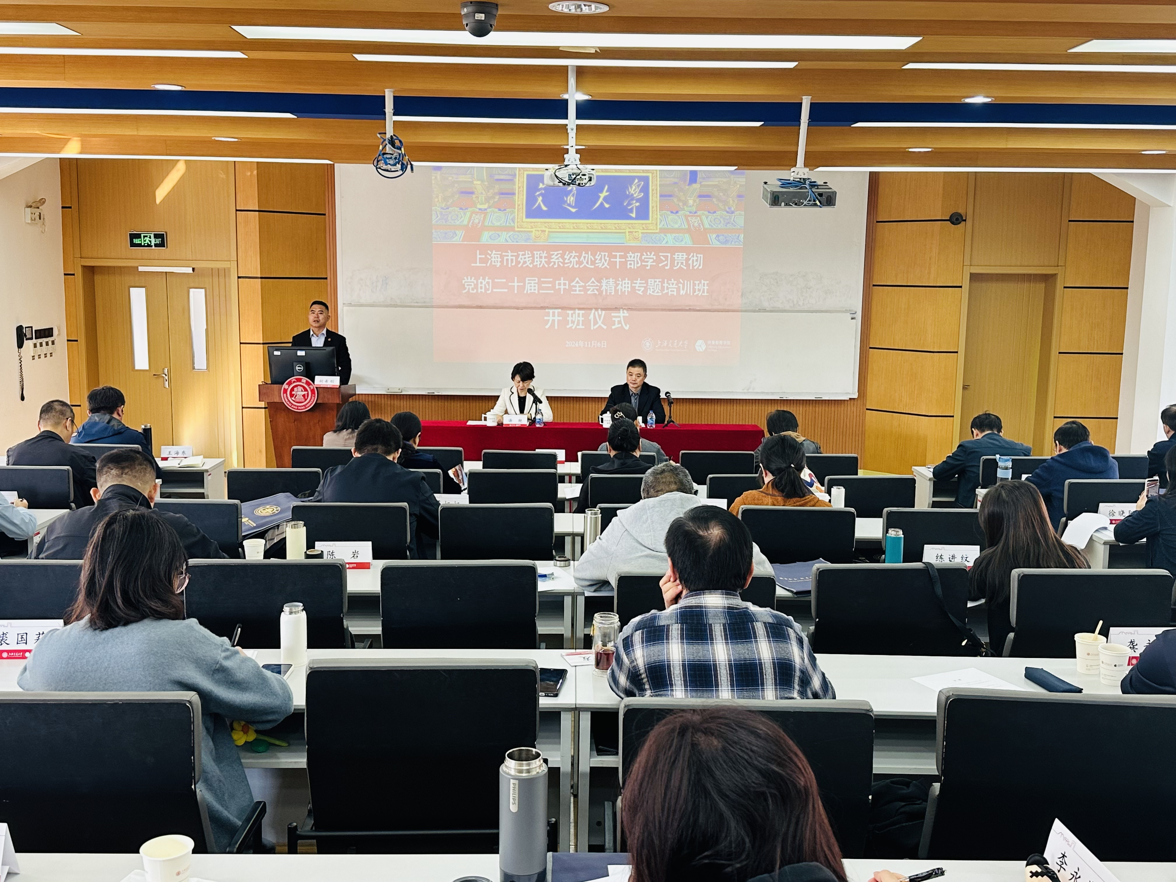 11月6日上午,由必赢国际437官网承办的上海市残联系统处级干部学习贯彻党的二十届三中全会精神专题培训班在上海交大长宁校区开班。上海市残联党组成员、副理事长汤艳,必赢国际437官网院长助理高天峰出席开班典礼。来自上海市残联系统共计43名处级干部参加了此次培训,开班仪式由经济管理创新中心副主任胡希刚主持。